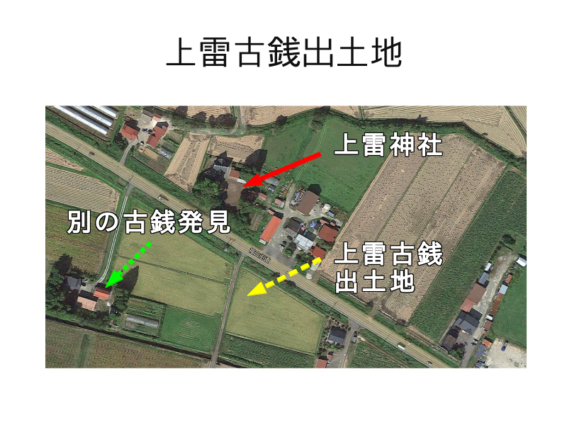 また、そのすぐ近くの小屋では上雷古銭とは別の古銭が発見されています。