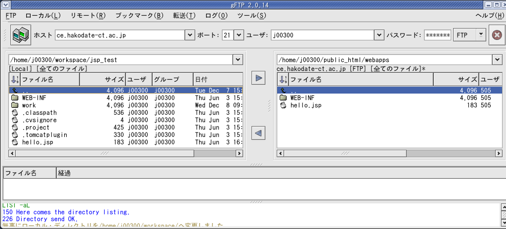 JSPをdeployするサーバはce.hakodate-ct.ac.jpです。