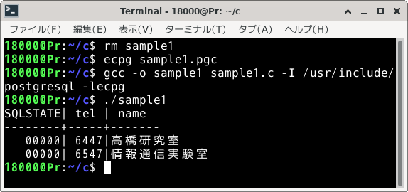 C言語でPostgreSQLを使う ===埋め込みSQL===